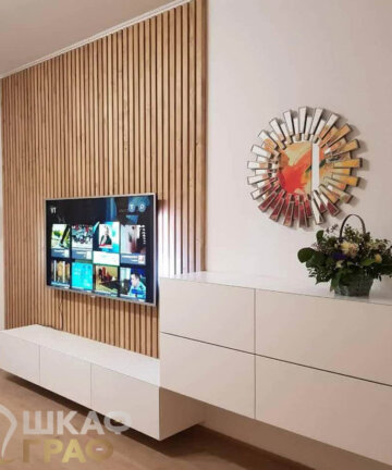 Невероятно стильное решение для современной прихожей, которое заменяет собой стандартный шкаф или вешалку. Центром композиции является огромное полукруглое зеркало, вписанное в геометрию стены. По всему периметру зеркального полотна проложена скрытая LED-лента, создающая эффект парящего в воздухе света (контурная подсветка). Этот прием не только служит отличным источником мягкого освещения, но и делает интерьер глубоким и многогранным.