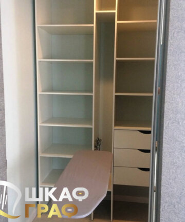 - Оформление гардеробных позволяет задействовать бесполезные зоны (тупики, углы), созданные за счет конструктивных особенностей здания;