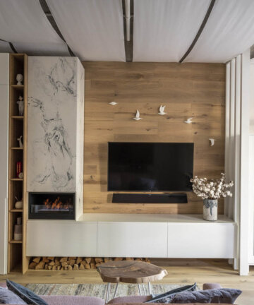 Горка в гостиную-кухню с тумбой под телевизор №S28