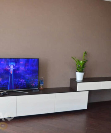 Мебель в гостиную: белая подвесная секция с тумбой под ТВ №S23