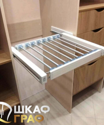 При заказе гардеробного шкафа выбирайте модели с закрытыми и открытыми секциями хранения, выдвижными ящиками. Предусмотрите место для сезонной одежды, вещей длительного хранения и повседневного использования. Для первых двух категорий отводится место в верхней части системы.