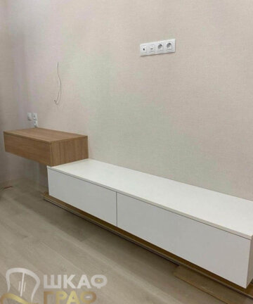 Горка на заказ в гостиную бежевого цвета с тумбой под ТВ №S52